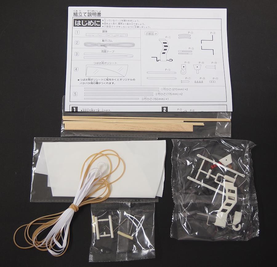 全長:約350mm 全幅:約450mm 内容:各部付属品1式、竹ひご、両面テープ、PP製翼、組立図