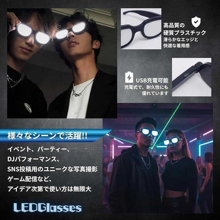 「光とインパクト」スイッチひとつで強く発光し、楽しめる光るメガネです。