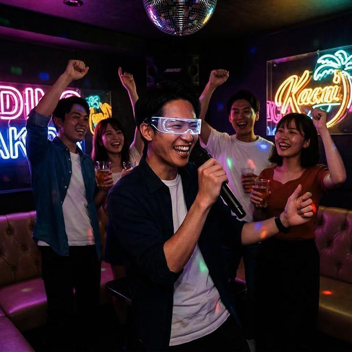 暗闇で視線を独占する、サイバーパンク風LEDグラス。