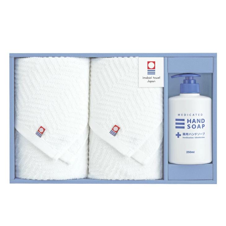 フェイスタオル(約34×75cm)×2、薬用ハンドソープ250ml×1