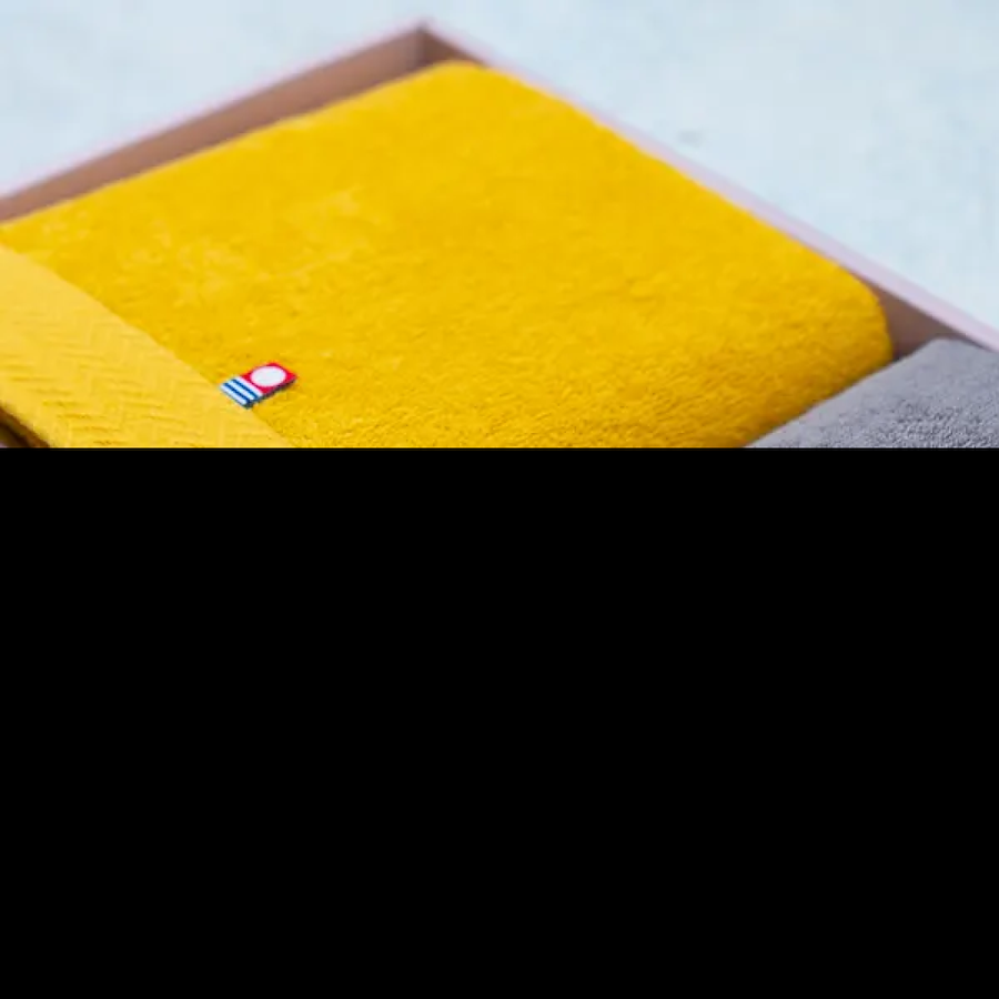 This exquisite organic cotton towel set from the renowned Imabari region of Japan is a perfect blend of happiness and calm. Featuring a cheerful mustard yellow and a sophisticated greige color, this set is designed to bring a bright, uplifting feeling to your home.