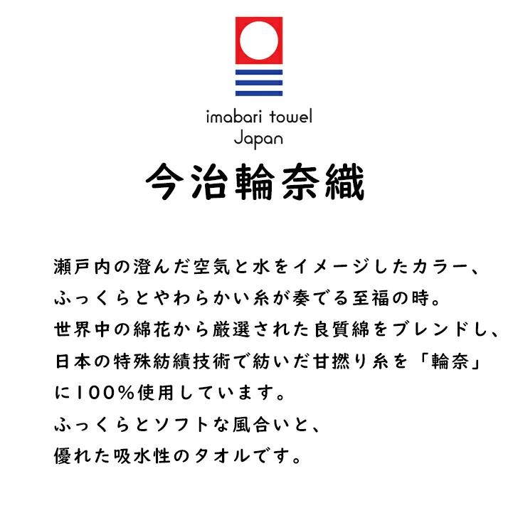 瀬戸内の澄んだ空気と水をイメージしたカラー、ふっくらとやわらかい糸が奏でる至福の時。世界中の綿花から厳選された良質綿をブレンドし、日本の特殊紡績技術で紡いだ甘撚り糸を「輪奈」に100%使用しています。ふっくらとソフトな風合いと、優れた吸水性のタオルです。