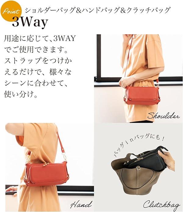 上質な牛革のみを使用したお財布機能ポーチ。ハンドバッグとショルダーとクラッチの3wayでシーンを問わず使えます!