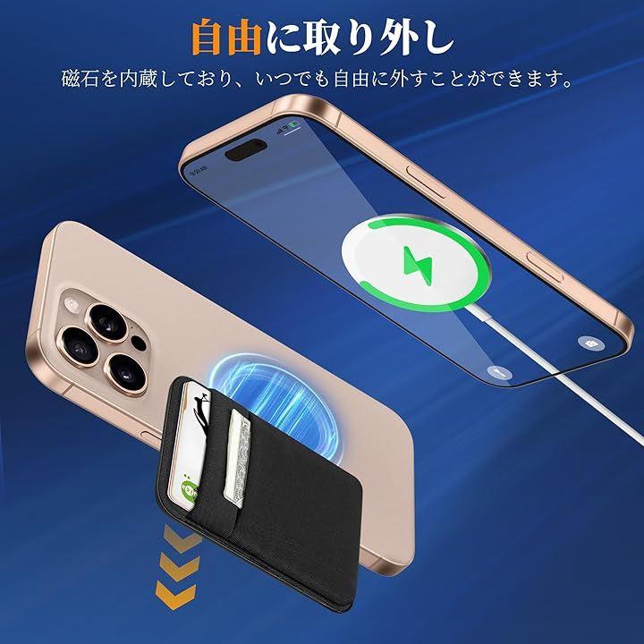 「磁力カードポケット」SHANSHUI携帯カードホルダーは強力な磁力を内蔵したスマホ カードケースでMagsafeケースやマグネットを内蔵してるiPhone16/15、iPhone14、iPhone13 、iPhone 12シリーズのようなスマートフォンをしっかり吸い付いてカード収納を安心して使用できます。