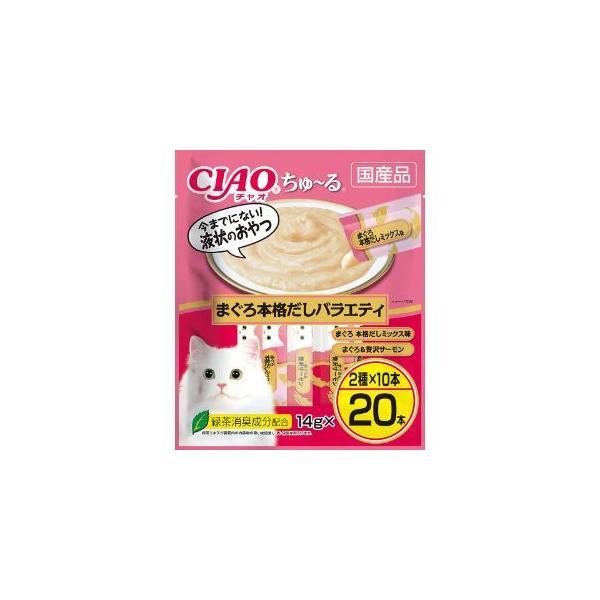 「使用方法」1日4本を目安にお与えください。「成分」【まぐろ 本格だしミックス味】まぐろ、かつお節エキス、ほたてエキス、昆布エキス、糖類(オリゴ糖等)、植物性油脂、増粘安定剤(加工でん粉、増粘多糖類)、ミネラル類(Na、P、Cl)、調味料(アミノ酸)、ビタミンE、緑茶エキス、紅麹色素【まぐろ&贅沢サーモン】まぐろ、サーモン、鮭エキス、タンパク加水分解物、糖類(オリゴ糖等)、植物性油脂、増粘安定剤(加工でん粉、増粘多糖類)、ミネラル類(Na、P、Cl)、調味料(アミノ酸)、ビタミンE、紅麹色素、緑茶エキス「使用上の注意」袋の誤飲に注意してください。「問い合わせ先」いなばペットフード株式会社「TEL」0120-1783909時~17時「製造販売元」いなばペットフード株式会社「住所」静岡市清水区由比北田114-1「原産国」日本「商品区分」日用品