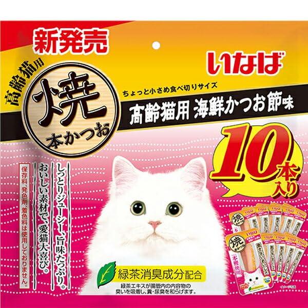 Inaba Pet Food Ciao Yakimoto Katsuo for Senior Cats, Seafood and Dried Bonito Flavor, 10 Sticks