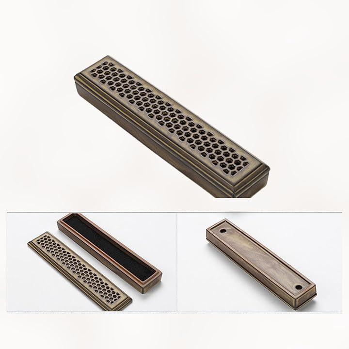 「優雅なデザイン」この線香立ては、アンティークなデザインと透かし彫りが特徴で、和風のインテリアにぴったりです。