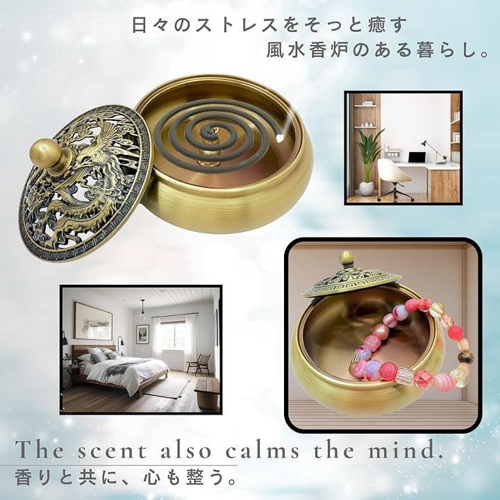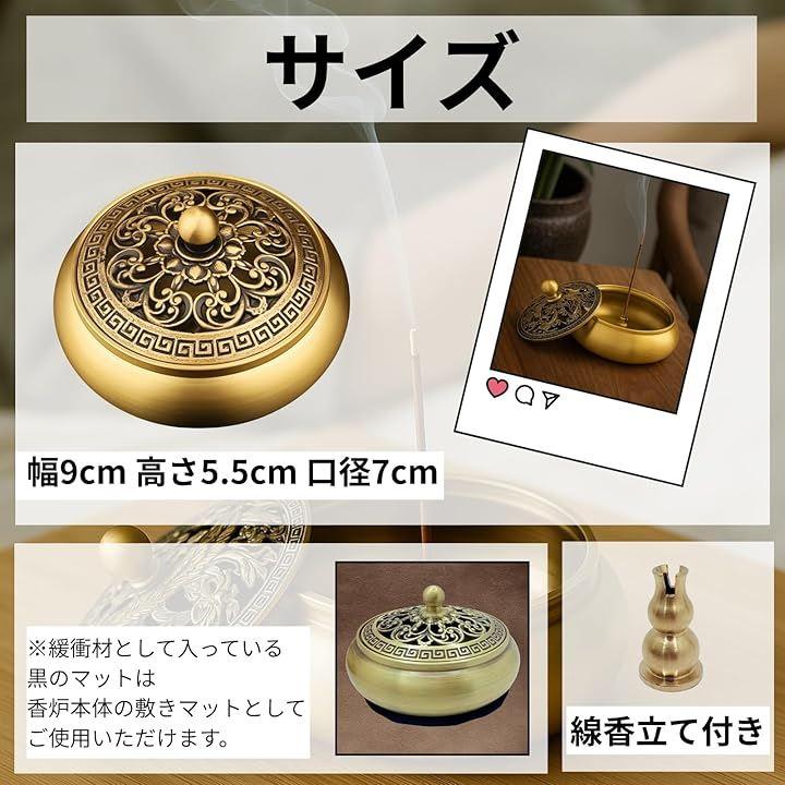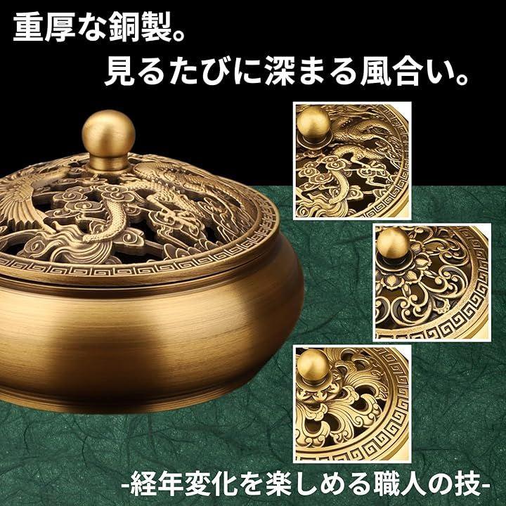 重厚感と品格を兼ね備えた銅製の香炉:高級感のある銅素材を採用し、どの角度から見ても品格を感じさせる仕上がり。