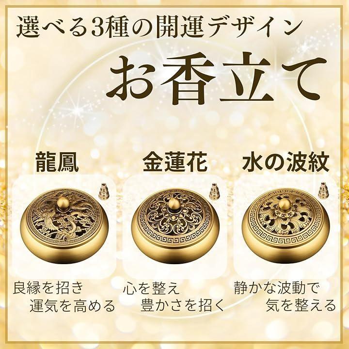 空間を彩る東洋美あふれるデザイン:繊細な彫刻が施された香炉は、金蓮花や龍鳳、水の波紋の3種類のデザインをご用意。