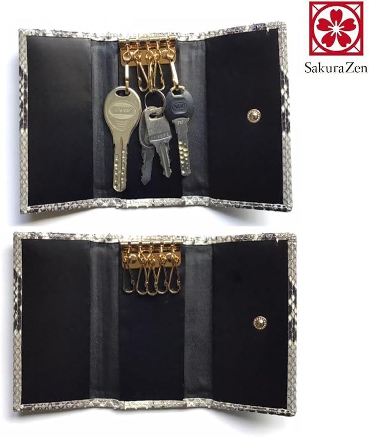 「スペック」SIZE:約11,5x9.5x1.5cm 仕様:キーフックx5 ポケットx2 素材:外面:錦蛇皮革 内面:牛皮革 合皮 *天然蛇革皮革(エキゾチックレザー)の為、一つ一つの鱗模様などが画像とは若干異なります。