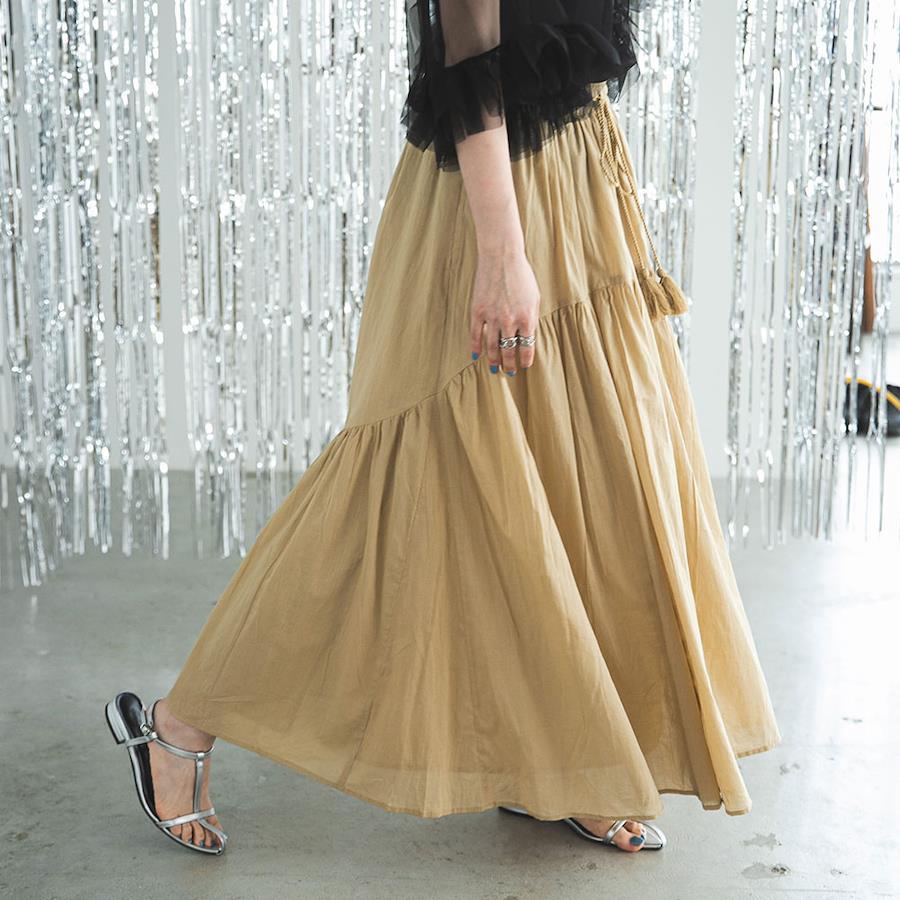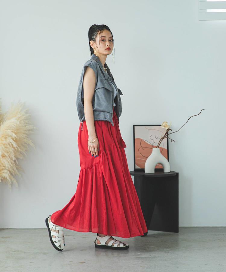 シアー素材との相性もいいので、どんなシーンでも着やすいスカートです。