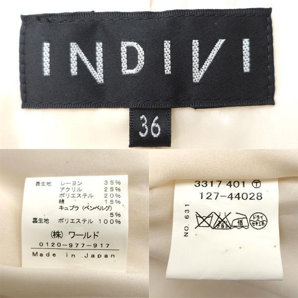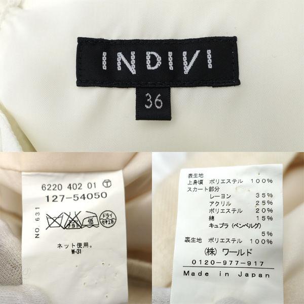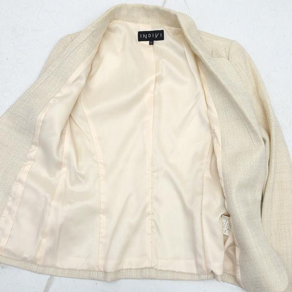 ・メーカー :INDIVI / インディヴィ・製品型番 :127-44028・サイズ :【上】:,表記サイズ:36,肩幅 (約cm):34,身幅 (約cm):44,着丈 (約cm):85.5,袖丈 (約cm):50,【下】:,表記サイズ:36,肩幅 (約cm):36,身幅 (約cm):38,着丈 (約cm):54,袖丈 (約cm):58,・色(柄)の系統:ベージュ ホワイト・デザイン :(レディース)スーツ・素材 :レーヨン アクリル 他・付属品 :なし-------------商品状態-------------・ランク :A・詳細 :若干の毛羽立ち等、一般的な使用感はありますが、目立つ大きなダメージはありません。