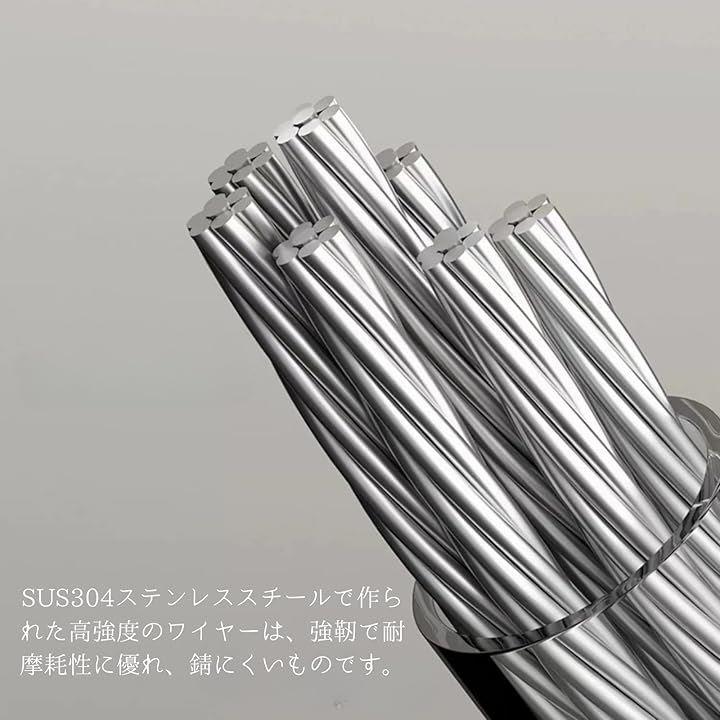 「高強度・耐久性」SUS304ステンレススチール製ワイヤーは、強靭で耐摩耗性に優れ、錆びにくい設計。