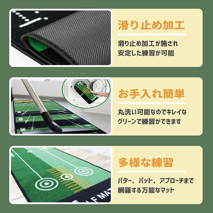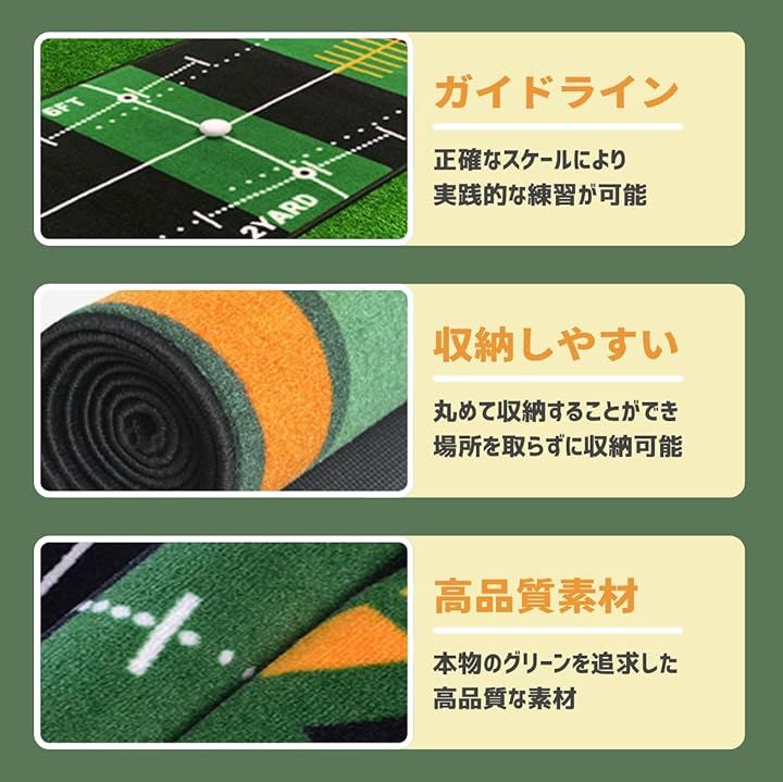 「精度向上」パット・アプローチ特化型 パターの距離感と方向性を養うためのガイドライン付きグリーンマット。