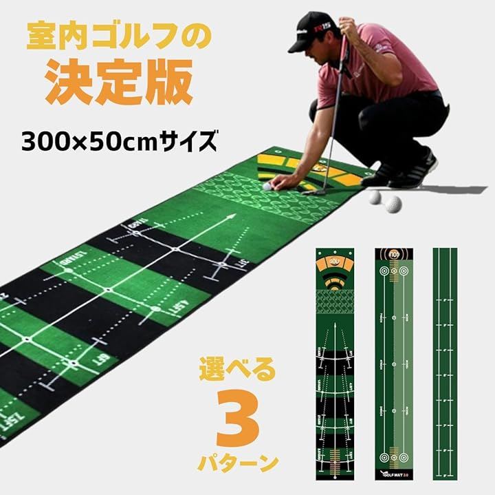 「自宅で本格練習」室内ゴルフの決定版 自宅を本格的なグリーンに変える、300x50cmサイズのゴルフ練習マットです。