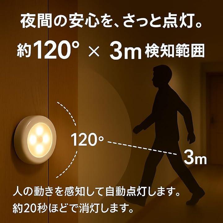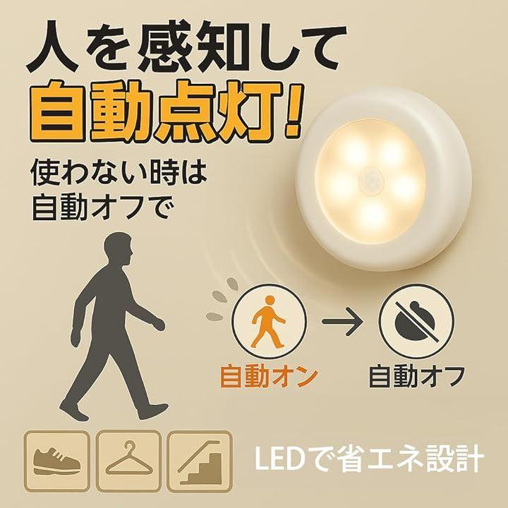 商品説明: 人の動きを感知して自動点灯・自動消灯する室内用の人感センサーライトです。