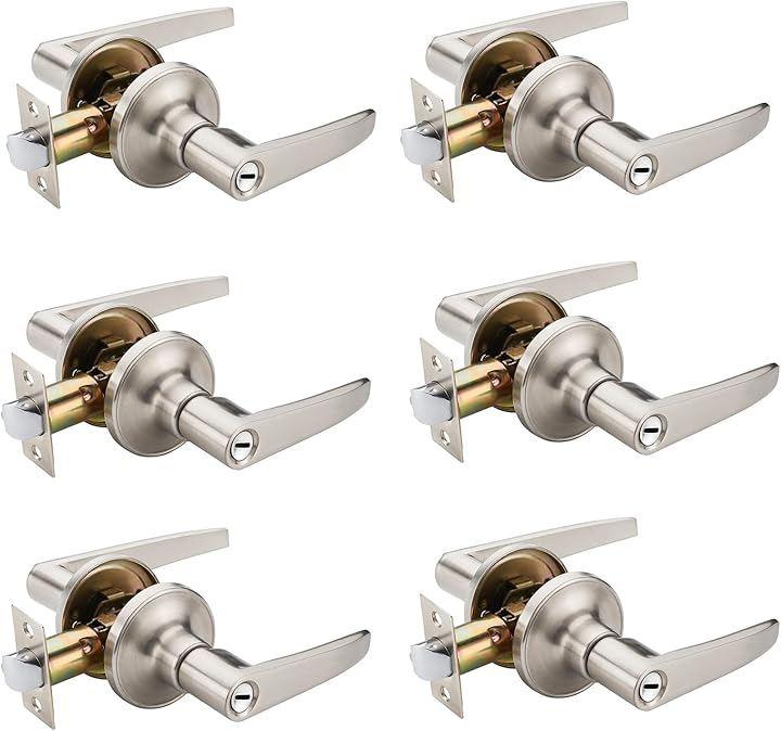 [鍵なし-6本] 45°ドアを開けレバーハンドル錠,亜鉛合金の主体、三つの鍵;適用扉厚:30-50mm,ラッチは60mmあるいは70mmに調整可能,フェイスプレート直径:65mm,ハンドルの長さ:120mm。