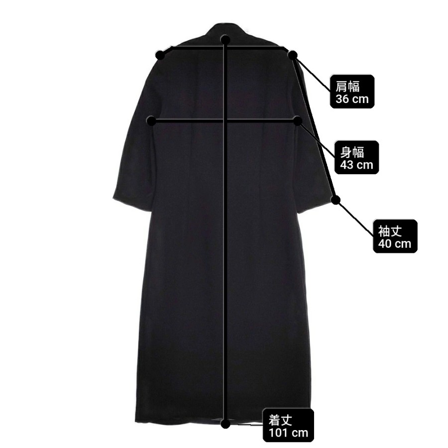 | 実寸サイズ | 肩幅:約36cm 着丈:約101cm 身幅:約43cm 袖丈:約40cm 備考 ジャケット:肩幅 37cm/ 着丈 50.5cm/ 身幅 46cm/ 袖丈 57.5cm/ 着丈(前) 57cm ※採寸画像がある商品はハンガーに吊るした状態での計測のため、平置きでの採寸とは差が生じる場合がございます。平置きでの実寸サイズをご希望の場合は、ご購入前に必ずご質問ください。 ※記載以外のサイズが合わないことを理由とした返品はできませんので、 記載部分以外で実寸サイズの気になる箇所があれば必ず購入前にご質問ください。 |