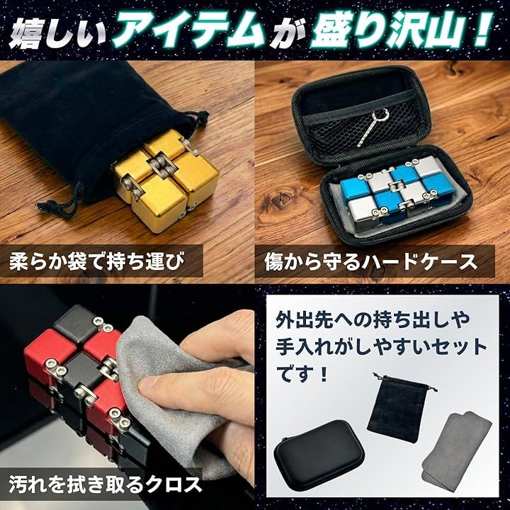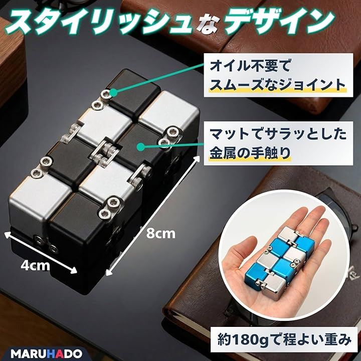 「静音でスムーズな回転」高品質なジョイントを採用しており、オイル不要で滑らかに回転し続けるフィジェットキューブです。