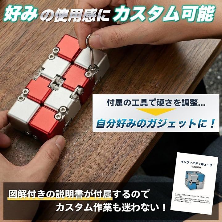 「商品内容」本体x1、ハードケースx1、収納袋x1、クリーニングクロスx1、メンテナンス工具x1、図解説明書x1 「材質」アルミ合金 「サイズ」1辺約2cmの立方体x8連結、展開時:約8cmx4cmx2cm 「重量」約180g 「注意点」*対象年齢6歳以上 *ご覧になっている画面設定によっては実物と色味が異なって見える場合がございます。