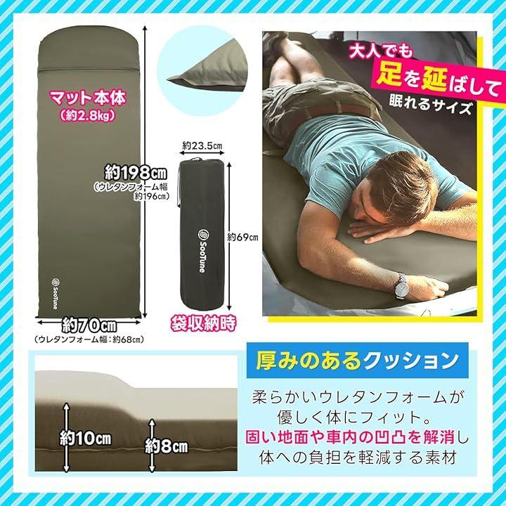 「寝心地へのこだわり」柔道整復師の監修により、エルゴノミクス(人間工学)デザインの枕、弾力性のある厚さ8cmのウレタン、すべすべもちもちのニット生地を組み合わせ、とことん寝心地にこだわったインフレーターマットが完成しました。