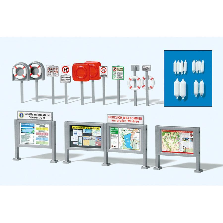 This is an unpainted kit model with images of information boards, floats, and signs.