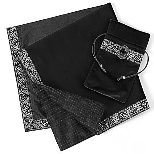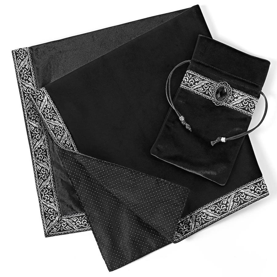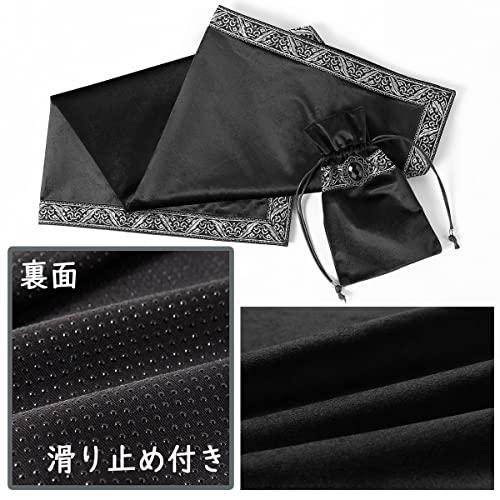 高級感のあるベルベット調生地を使用し、銀糸刺繍の縁取りをクロスとポーチに神秘的なデザインになっています。 シンプルな無地のタロットクロスなので、タロットカードを展開した際にカードのイメージを邪魔することなく、落ち着いた気持ちでリーディングに臨むことが出来ます。 タロットカード、オラクルカード、ペンジュラム、ダウジング、ルーンストーン、などなど様々にテーブルクロスがあれば神秘的な雰囲気をつくることができ、集中力も高めます。 タロットカードの傷めや汚れを防いだり、シャッフルしやすくなる効果もあります。 商品内容:タロットクロス1枚(約65×65cm)、タロットポーチ1枚(約12×19cm) ※「INIBUD」商標登録番号:6011399