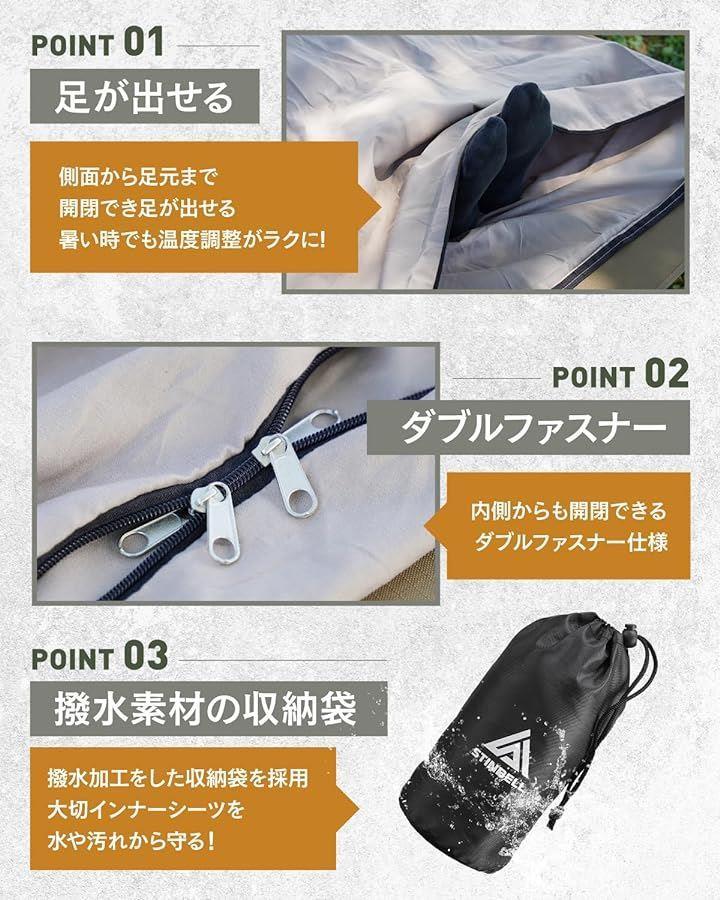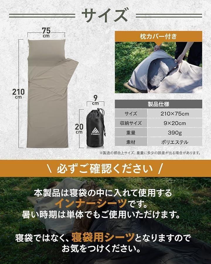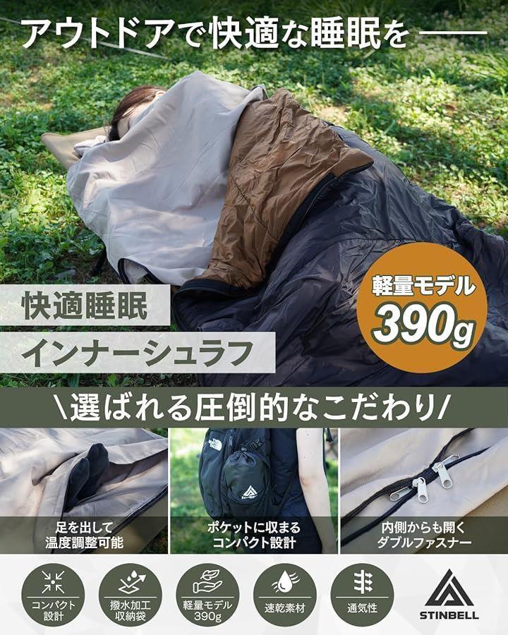ベッドシーツと同様、インナーシュラフを寝袋の中に敷くことで寝袋を汚すことなく清潔な状態を保つ事ができます。