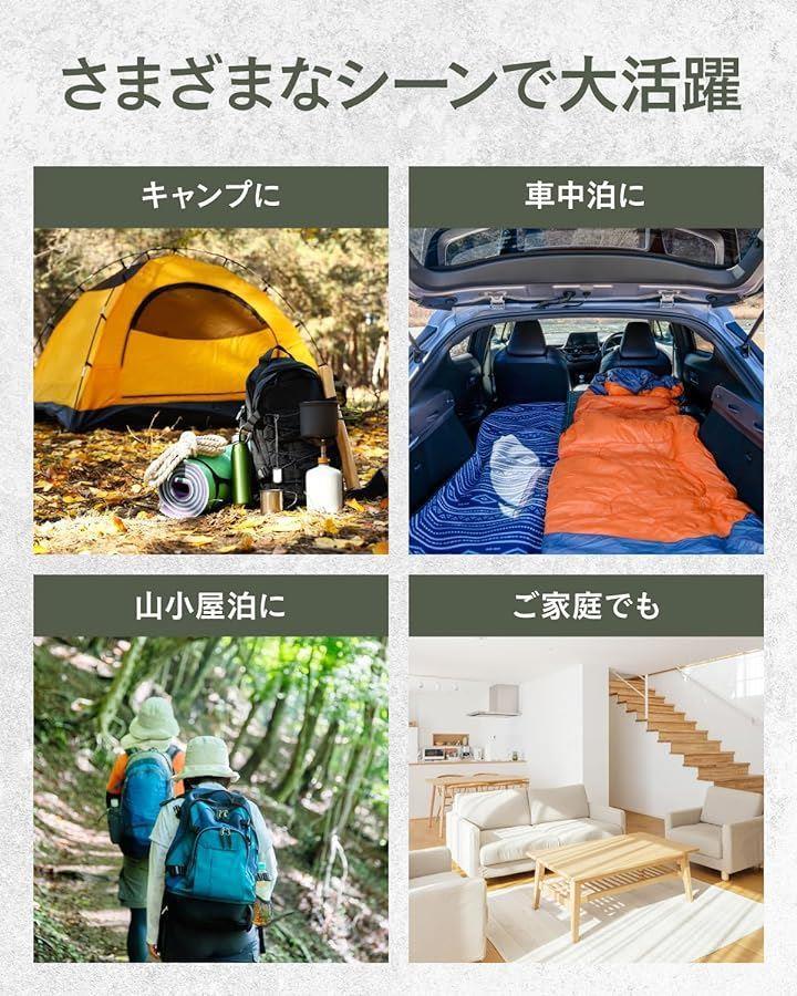 「様々な場面で大活躍」キャンプ、登山、ハイキング、フィッシング、BBQ、車中泊の時だけではなく来客用、知人宅への外泊用、夜勤時、トラックでの仮眠用、お昼寝用、出張や旅行時にシーツの上に敷くなど様々なシーンでご利用いただけます。