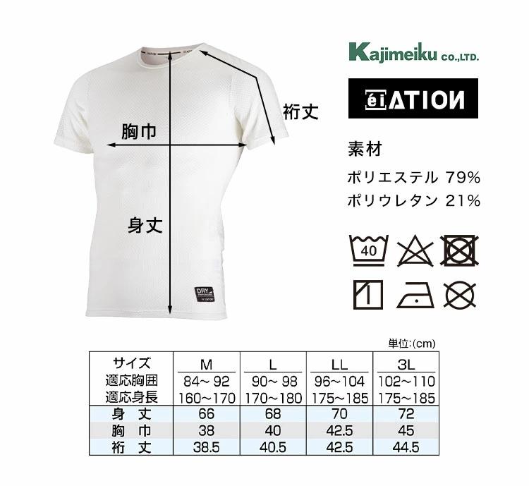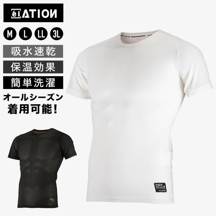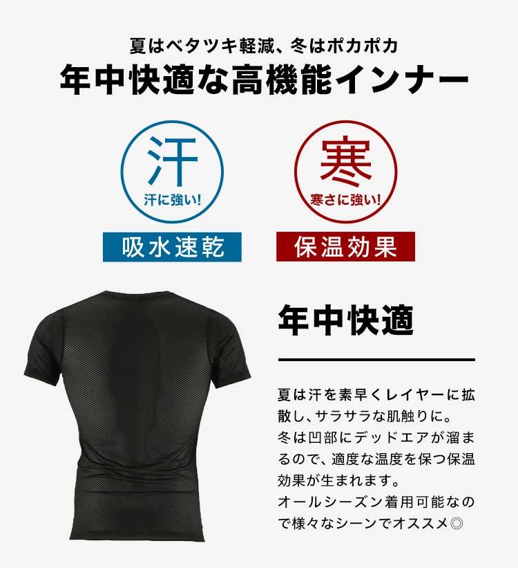 Innerwear for men, crew neck, cold protection, warm, heat retention, cool, moisture wicking, quick drying, breathable, all seasons, spring, summer, autumn, winter, short sleeves, underwear, undershirt, underwear, T-shirt, 8821, high performance, crater mesh, men, commuting, school, training, sports [kaji-8821]