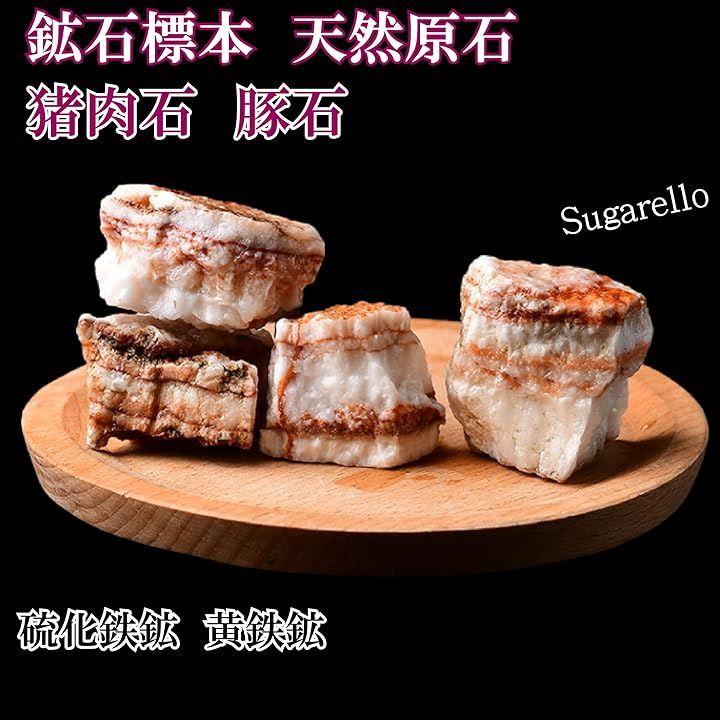 猪肉石(いのししせき、いのにくいし)は豚石(ぶたいし)とも呼ばれ、硫化鉄鉱(pyrite)や黄銅鉱(chalcopyrite)などの硫化鉱物で黄色かかった銅色をしており、見た目が豚のバラ肉に似ているのでこのように呼ばれていますが、鉱物学的な名称ではありません。