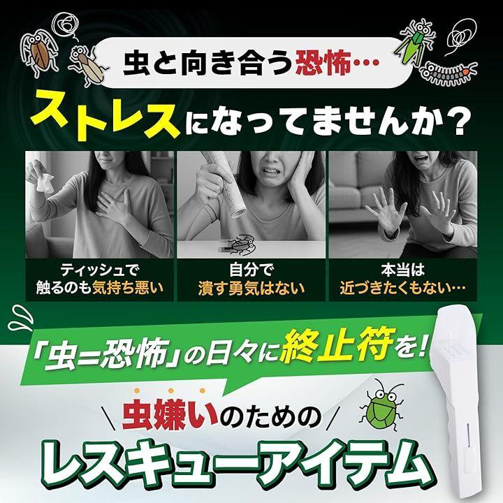 虫との接触に恐怖やストレスを感じる方 ティッシュで触るのも気持ち悪い方 自分で虫を退治する勇気がない方 本当は近づきたくない方 カメムシを中心とした様々な害虫に対応し、「虫嫌い」の日々に終止符を打つレスキューアイテムです。