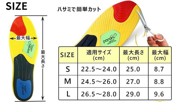 サイズ調整可能でご家庭にあるハサミで簡単にカットできますので靴にあわせてご使用いただけます。