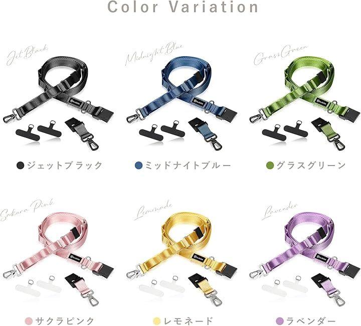 「製品仕様」 * タイプ : ネックストラップ / ショルダーストラップ * 対応機種 : スマートフォン 各種 ( iPhone Android 他 ) * 内容物 : ストラップ x 1本、ストラップカード x 2個 * 長さ : 約 105cm ~ 160cm 幅 : 2.0cm * 重量 : 約 80g * 素材 : ナイロン、メタル、ポリカーボネート、マグネット
