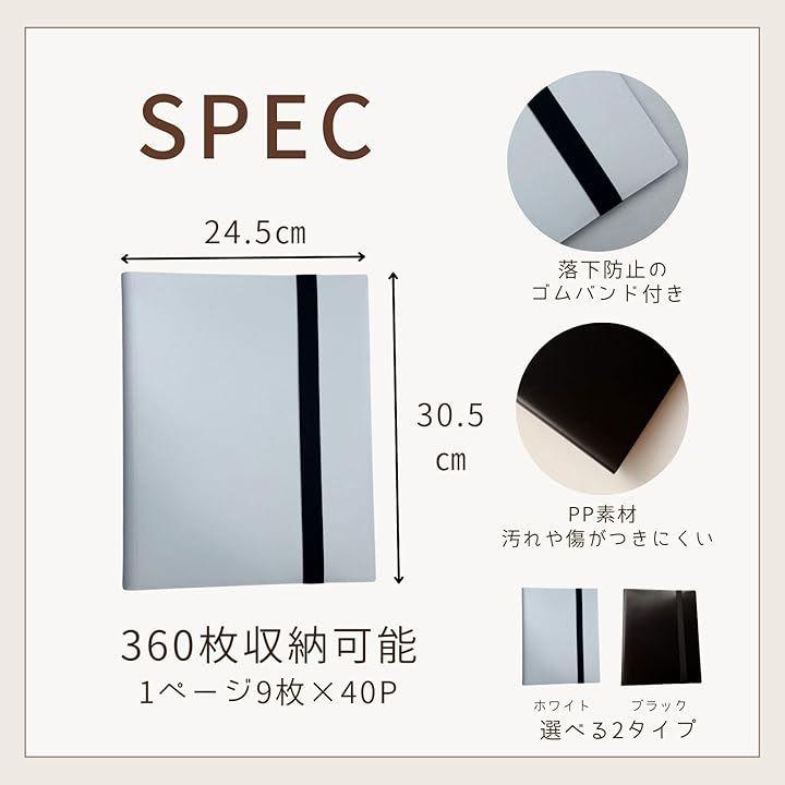 本体サイズ:30.5cmx24.5cm、ポケットサイズ:9.5cm、チェキ収納可能枚数:360枚。