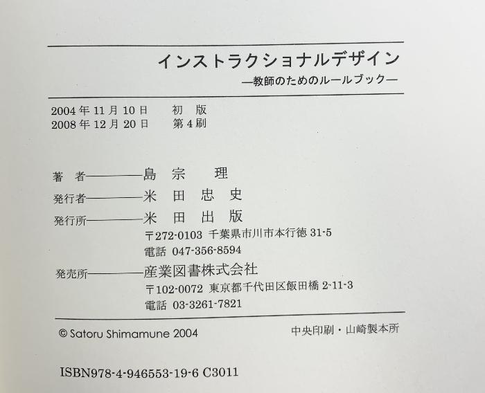 Instructional Design: A Rulebook for Teachers, Sangyo Tosho, Shimamune Osamu
