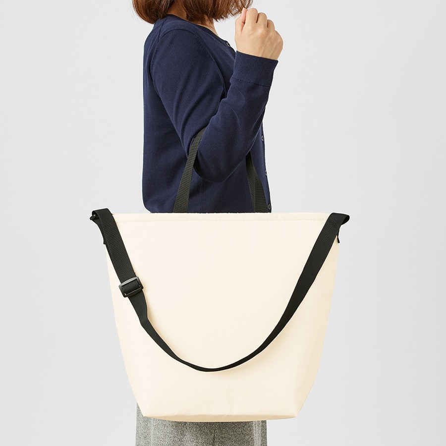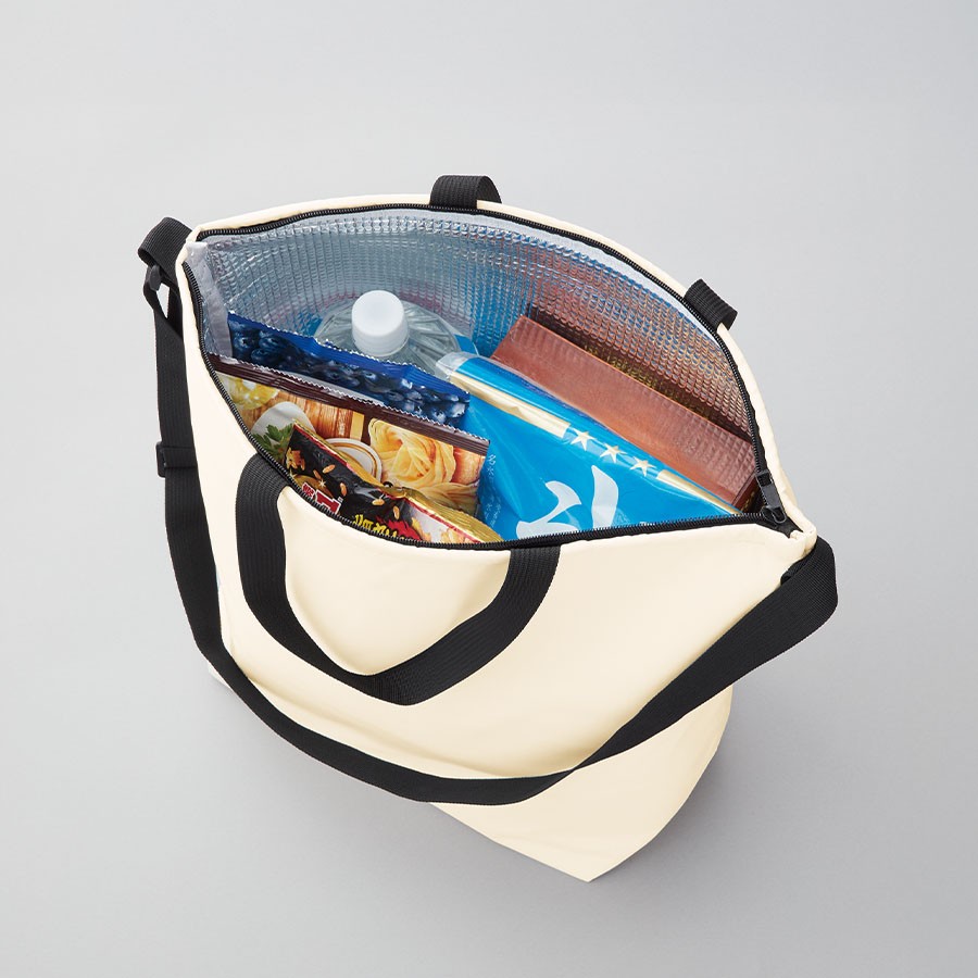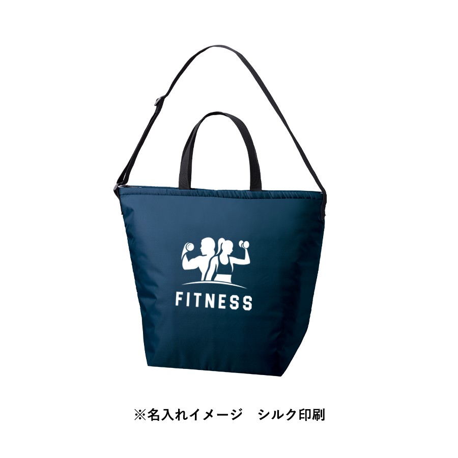 ポリエステル生地を使用したベーシックな保冷バッグです。2Lのペットボトルが入る大容量サイズかつ両手を空けることのできるショルダータイプとなっており、荷物が多くなるアウトドアやお買い物時に便利です。アジャスターパーツが付いており、お好みの長さに調節可能となっております。スポーツジムなどの入会記念品や株主優待品など、幅広くご提案頂ける商品です。