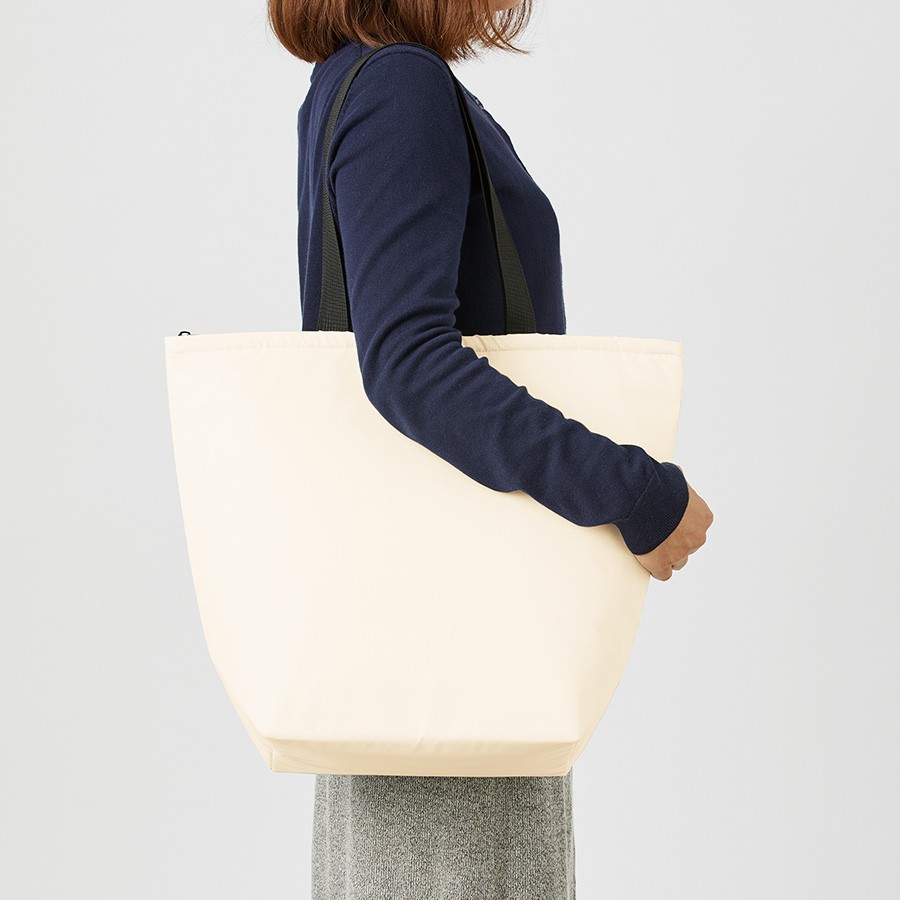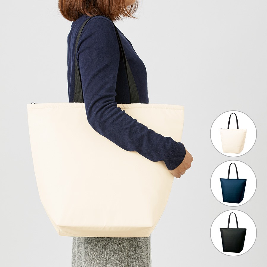 ポリエステル生地を使用したベーシックな保冷バッグです。Lサイズは2Lのペットボトルが入る大容量となっており、週末のまとめ買いやレジャーなど様々なシーンで活躍するアイテムです。印刷が映えるシンプルなデザインとなっており、世代問わずお使い頂くことが可能です。スーパーなどのオリジナルお買い物バッグやオープン記念品など幅広くご提案頂けます。