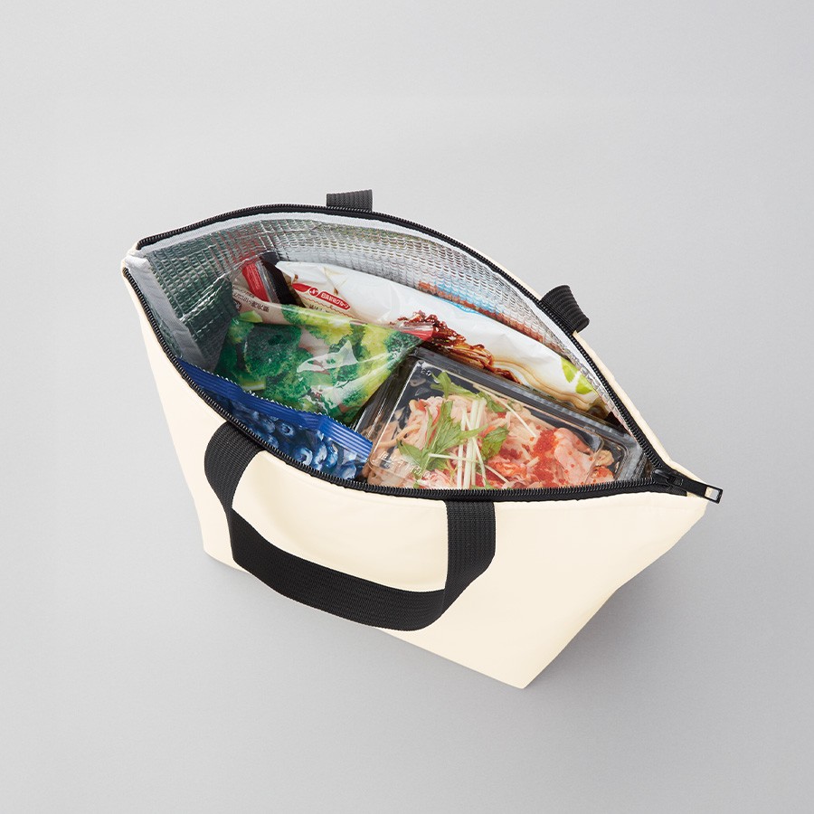 ポリエステル生地を使用したベーシックな保冷バッグです。Mサイズはコンビニのお弁当や冷凍食品なども入れやすいよう、マチを広めに設計しております。スーパーでのちょっとしたお買い物にも便利なサイズ感です。男女ともに使いやすいシンプルなデザインと色展開となっておりますので、レジャー施設のオリジナルグッズから成約記念品まで幅広くご提案頂けます。