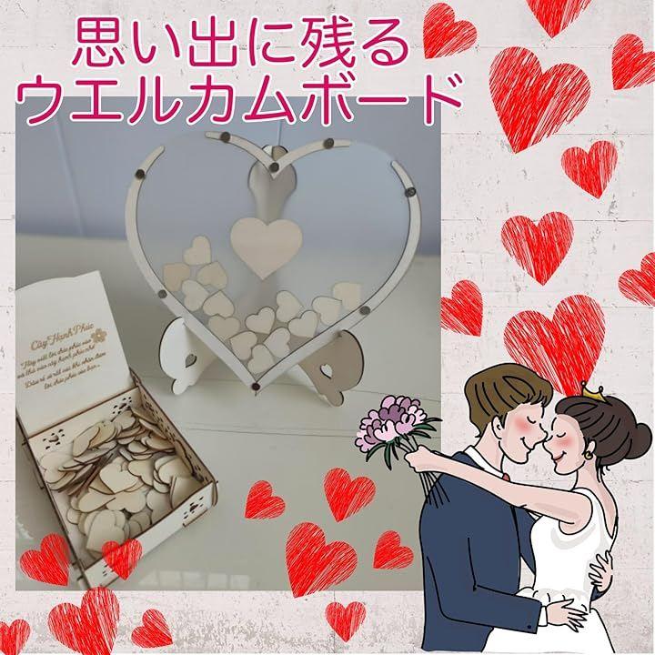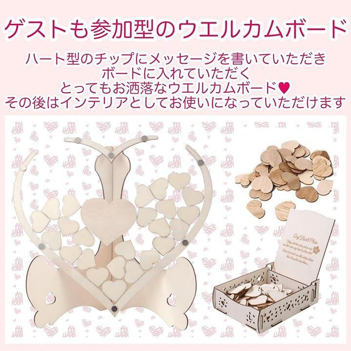 Sweet Plus「ウェルカムボード 参加型 結婚証明書 ウェディングドロップス 結婚式 披露宴 パーティー 受付 寄せ書き メッセージボード お出迎えアイテム ハート型」「参加型で思い出に残る演出」ゲストがハート型の木製チップにメッセージを書き込んでボードに入れる参加型のウェルカムボードです。