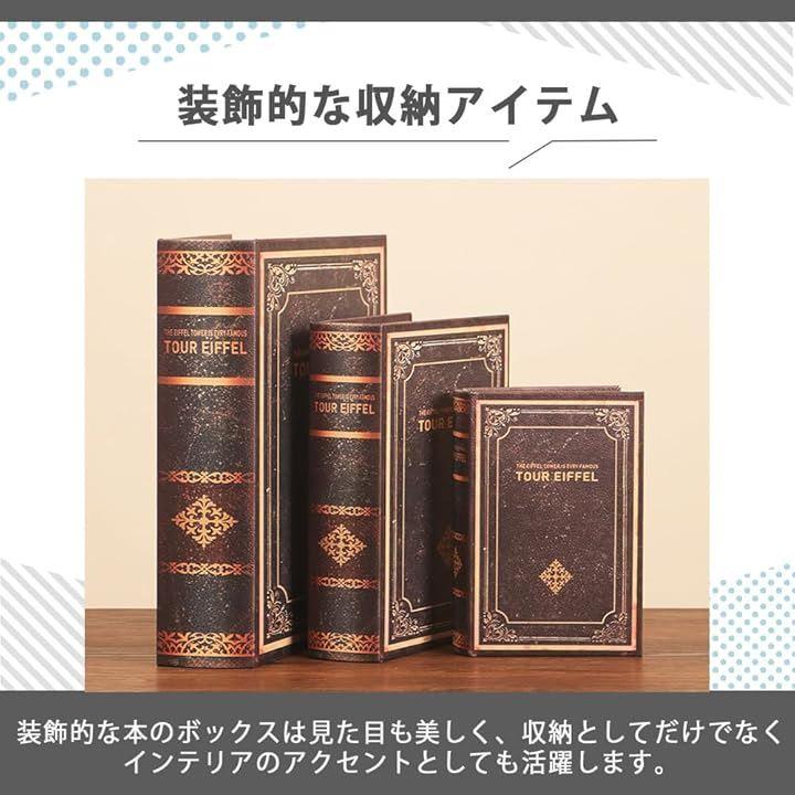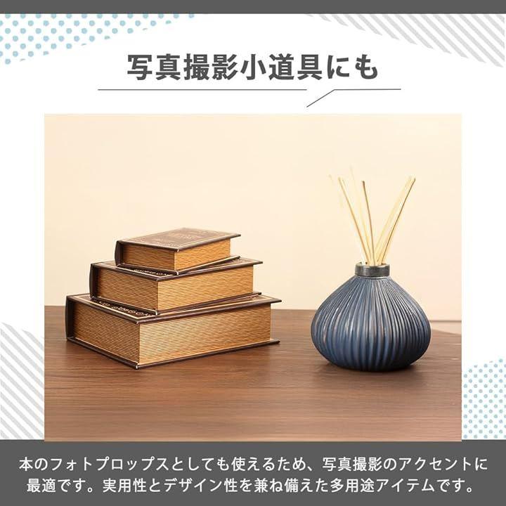 「装飾的な収納アイテム」 装飾的な本のボックスは見た目も美しく、収納としてだけでなくインテリアのアクセントとしても活躍します。