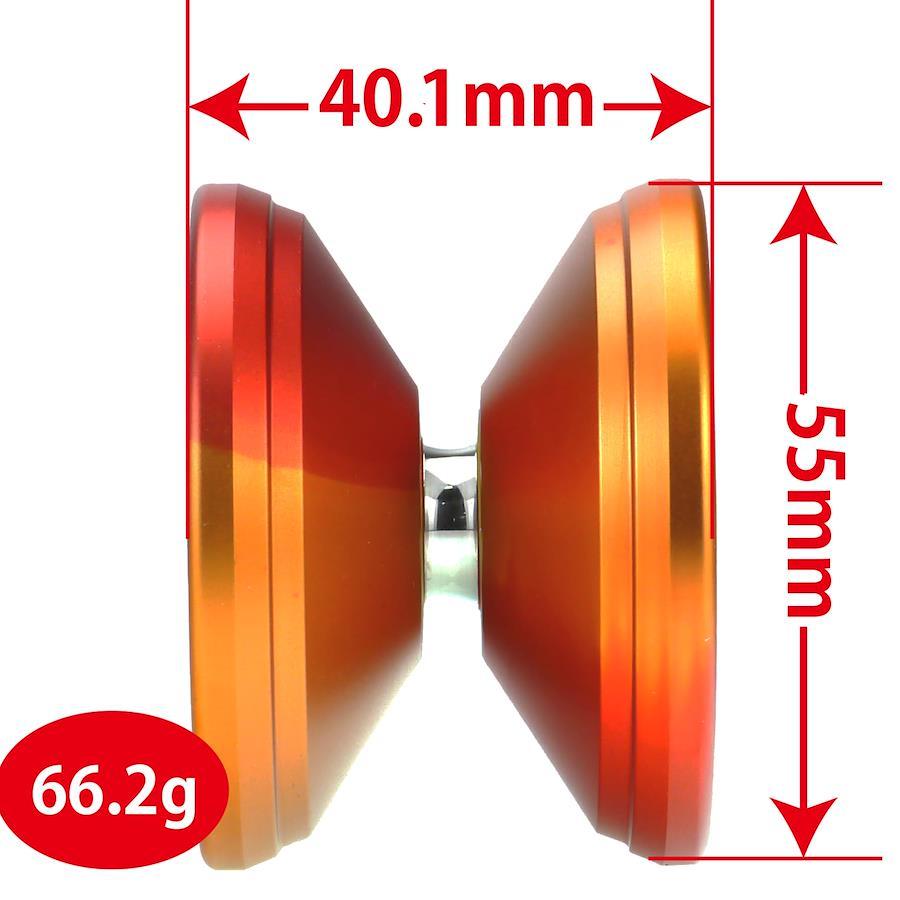 ヨーヨーが初めての人向けではなく、バインドというテクニックを理解している人向けの初中級者向けの機種となります。投げて引いても戻ってこないのが標準状態のヨーヨーです。バインドというテクニックで引っ掛けてヨーヨーを手元に戻します。 重量66g、直径55mm、幅40mmと適度な重量と軽快な動かしやすさが魅力の高コストパフォーマンスモデル。 後発のメリットとOEMで培ったノウハウを生かしたステップアップにちょうどいいメタルヨーヨーになっています。 側面はシンプルな形状になっているため指を使って横に回すトップオンやDNAにも対応可能です。 セット内容:ヨーヨー本体、ひも1本