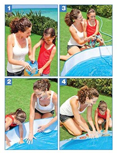 INTEX社製の使いやすいプールです。空気を入れる必要がないので簡単に使えます。いざという時に安心の修理用パッチ付