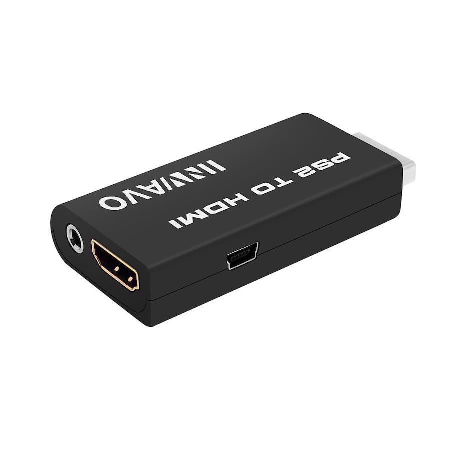 This adapter connects to the AV output port of PS2 and converts to HDMI output. Enjoy PlayStation 2 not only on TV but also on PC monitors. This adapter connects to the AV output port of PS2 and converts to HDMI output. Enjoy PlayStation 2 not only on TV but also on PC monitors No display delay or sound noise caused by converting to HDMI output! The HDMI selector allows you to manage your connections together with other gaming consoles (PS3, Xbox360) that have an HDMI connection Set Includes: 1 x PS2, HDMI Conversion Adapter, 1 x 5.9 ft (1.5 m) HDMI Cable, 1 x Power USB Cable, 1 x Instruction Manual (English language not guaranteed) Note: Please connect the USB power cable to prevent the power supply is insufficient and the blue screen and black screen This V3 product has been improved to prevent the power supply cable from interfering with the PS2 unit (SCPH-10000 - SCPH-55000) when used in vertical orientation of the PS2 unit (SCPH-7000 - SCPH-9000). Enjoy your PS2 game now with the added convenience!