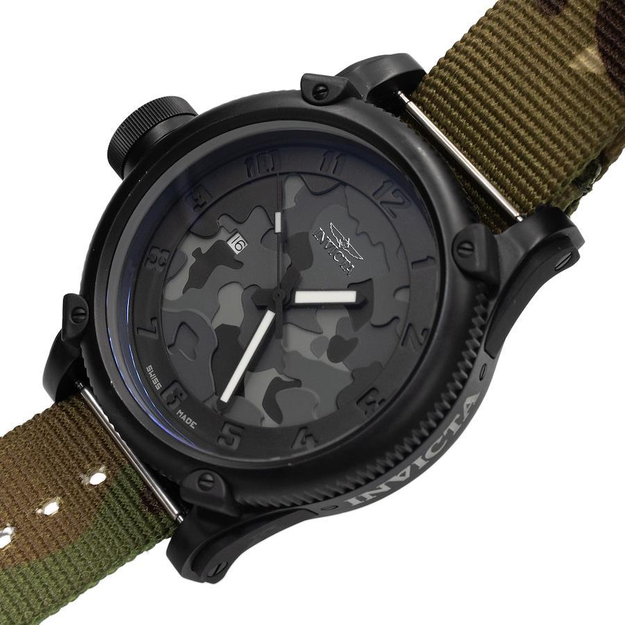 Invicta Men's Quartz Watch, Limited Edition (5000 pieces), Available in Gray, Light Gray, Black, Yellow-Green, Green, Brown, and Beige, Large, Flashy, Eye-catching Logo, Outdoor Brand, Camouflage, Rare, Stylish, Beautiful, X201