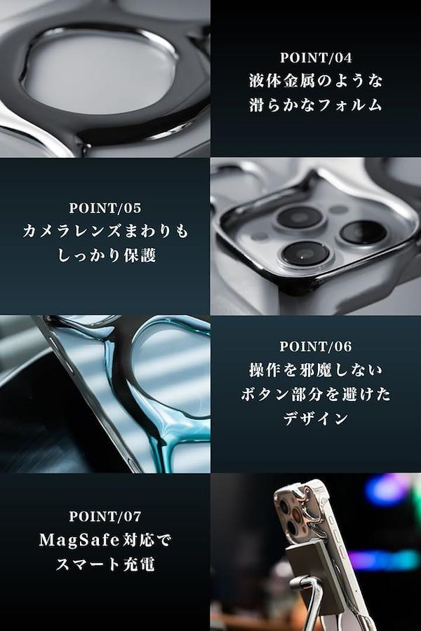 まるで液体金属がiPhoneを包み込むかのような、滑らかな曲線美が特徴です。