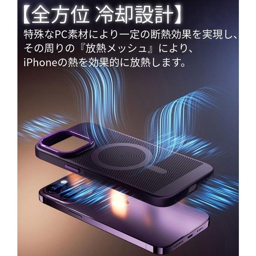 金属素材・特殊PC素材放熱メッシュによりiPhoneの熱を効率良く放熱し、パフォーマンスを落とすことなく長時間使用することができます。