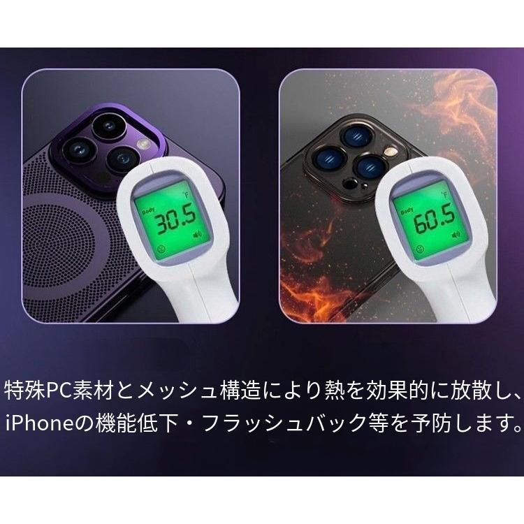 金属素材・特殊PC素材放熱メッシュによりiPhoneの熱を効率良く放熱し、パフォーマンスを落とすことなく長時間使用することができます。