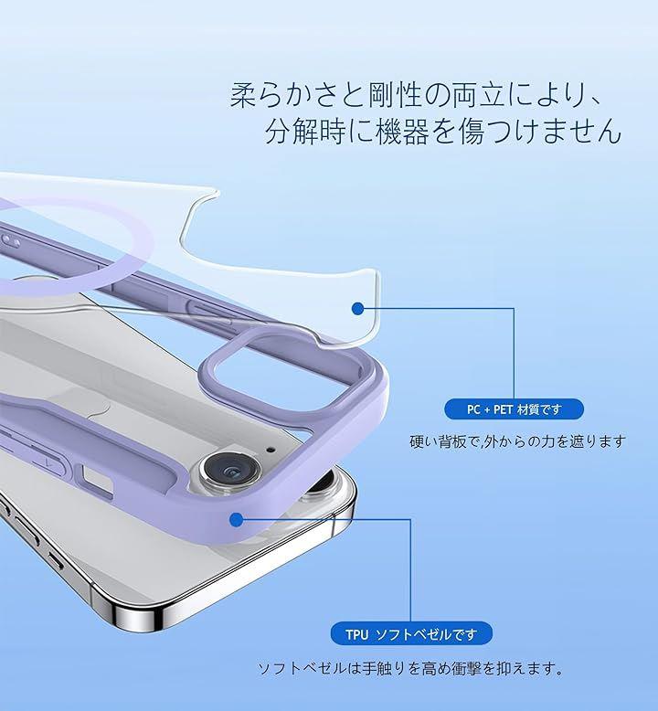 ・ワイヤレス充電対応:iPhone15ケースはマグネット充電に対応しており、ケーブルを差し込むことなく充電ポートを占有しないので非常に便利です。