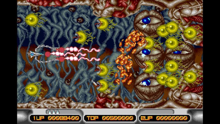 ■X MULTIPLY「X MULTIPLY」は生物的なグラフィックと自機の独特な攻撃方法が特徴的な横スクロールシューティングゲームです。アイテムを取ることで自機の上下に生える2本の触手は攻撃と防御の両方に使用できますが、触手の位置や方向は生物さながらのクセがある変化をするため、使いこなすには慣れが必要です。ステージも変化に富んだ構成となっており、状況に合わせて上手く触手を駆使して攻撃することが求められます。